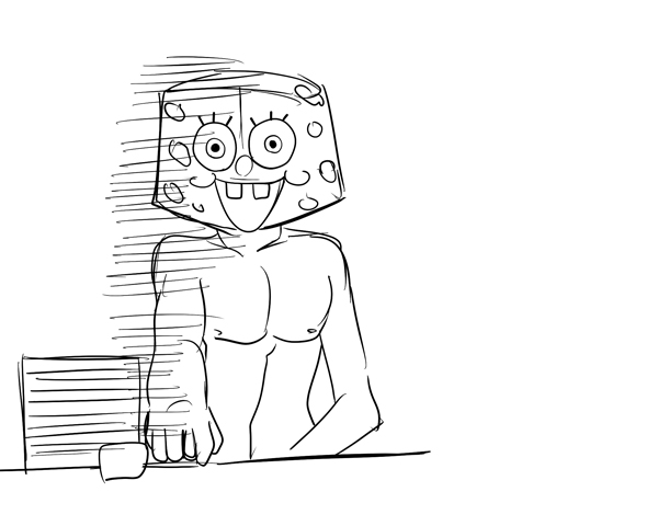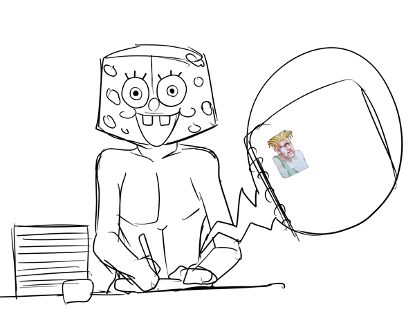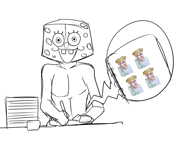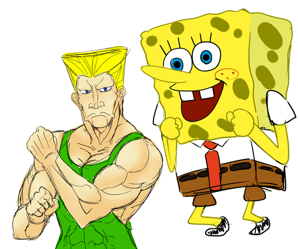 スペースに戻り友人に「微動だにしないスポンジボブおるでっwww」と見てきて貰いましたら、「ガイル描いてるでwwww」と教えられ見に行くと負けガイルを描いていましたw